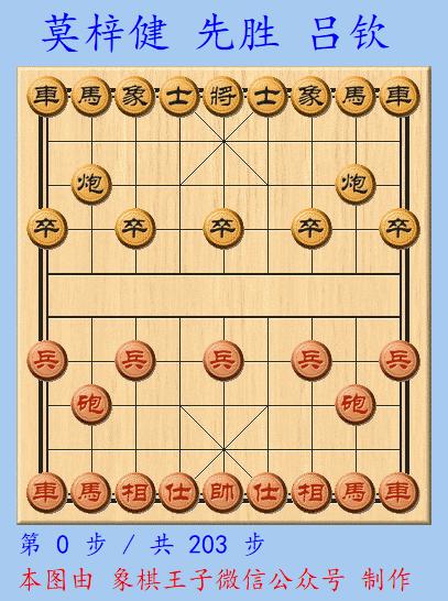 隨後連場遇上了06年的粵軍新星莫梓健,兩人年齡相差四十多歲,此戰打了203步,歷經血鬥,呂欽最終體力不支,後手至炮單士象對馬雙低兵雙仕,遺憾告負。