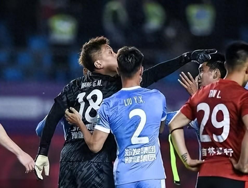 對方射門後,王國明便一路疾馳,還衝着卡多索大聲嚷嚷。卡多索也不示弱,兩人就你有來言我有去語,吵了起來,最終在隊友的勸解下,方纔作罷。