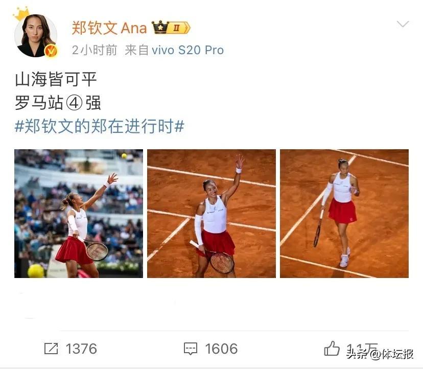 鄭欽文在個人社媒發文:山海皆可平 羅馬站④強。