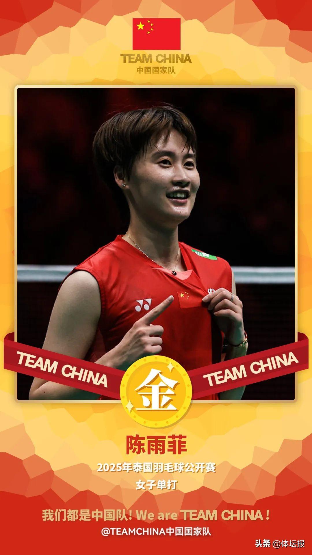 陳雨菲時隔6年再度問鼎泰國公開賽!浙江女將斬獲一金一銀