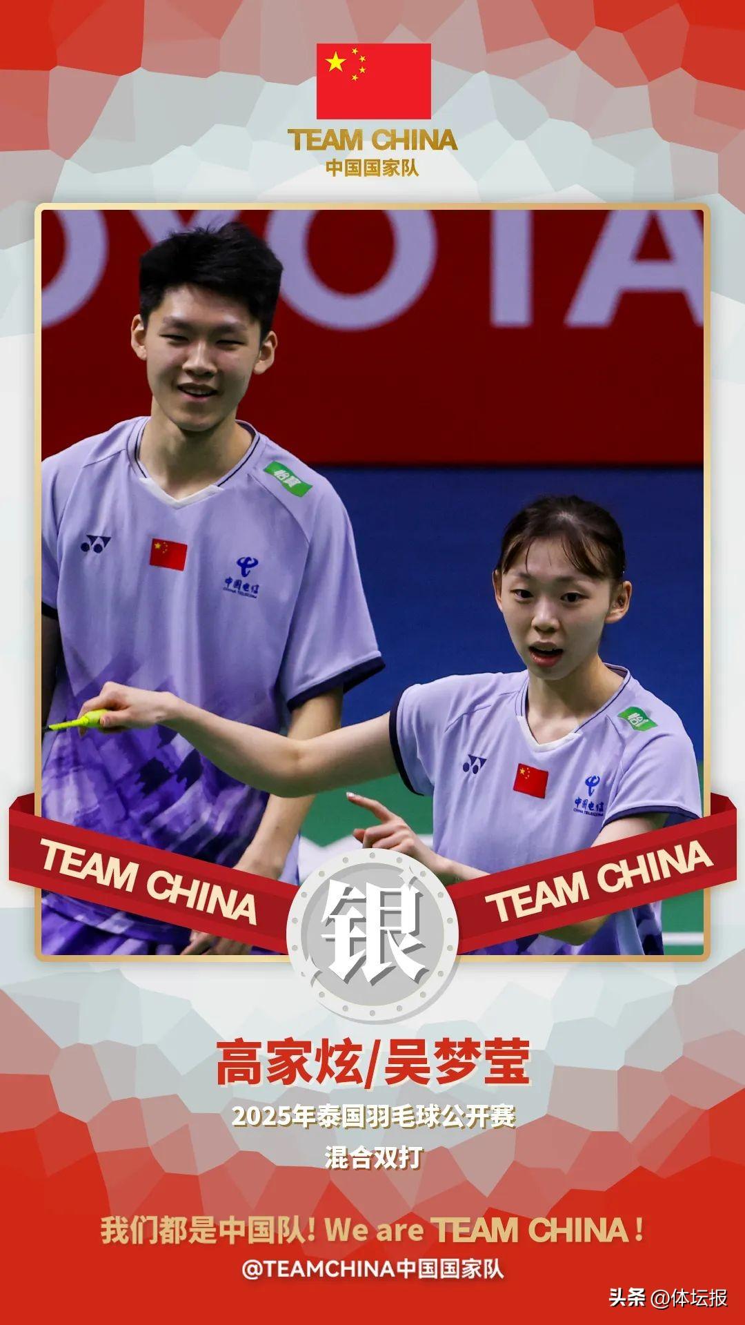也就是說,本次比賽中國羽毛球隊最終奪得2金1銀,其中,浙江女將貢獻1金1銀。