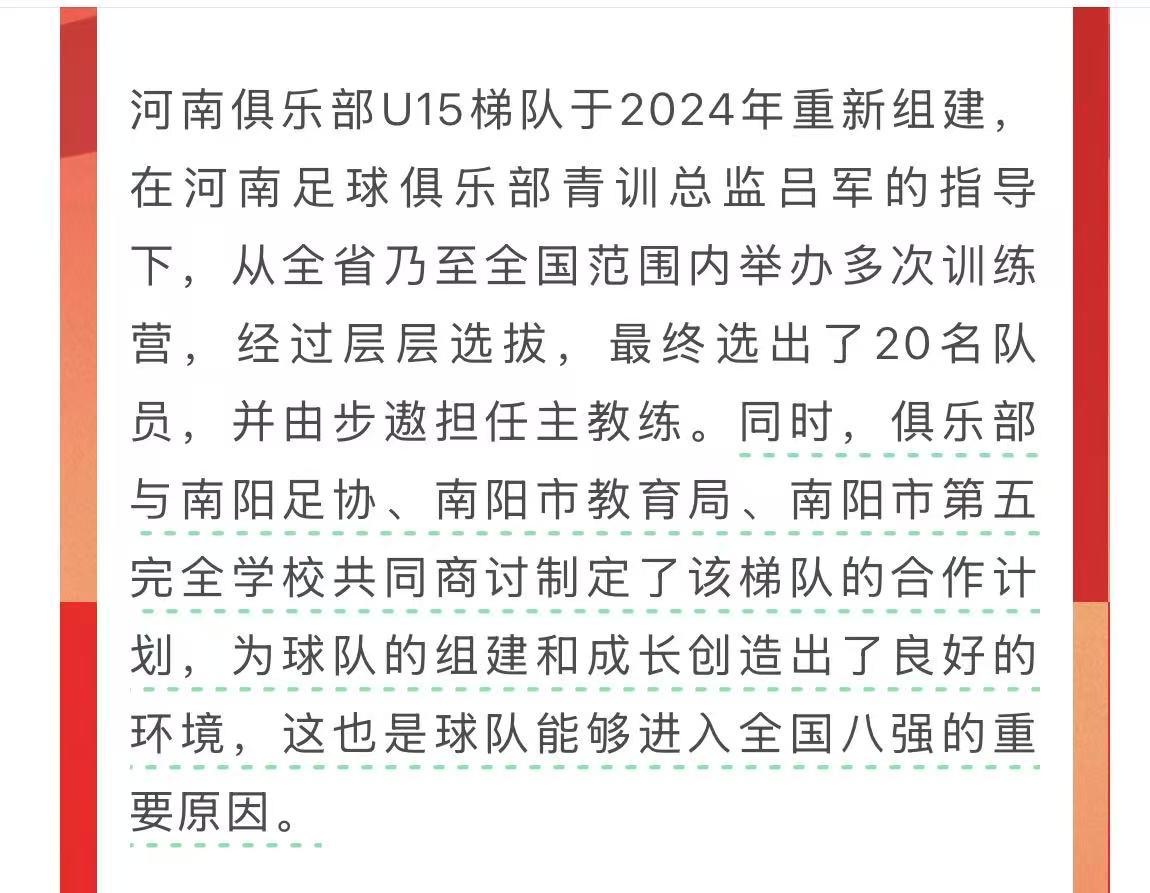 什麼叫報喜不報憂?河南俱樂部的官微充分說明了這一點。當U21、U17丟盔棄甲、潰不成軍時,人家閉口不提,卻發了一條U15高奏凱歌、挺進八強的消息。