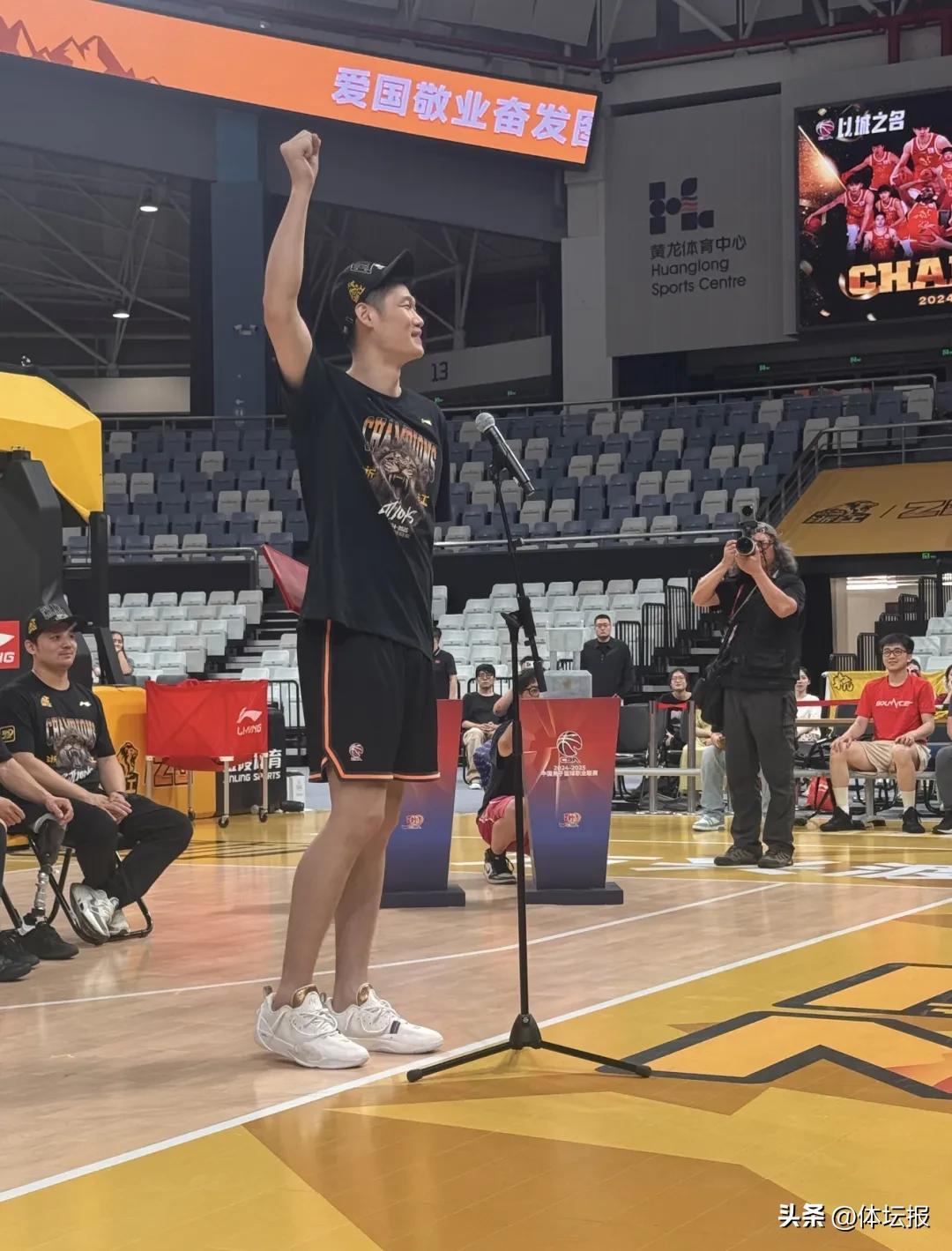 “今天我們帶着CBA冠軍至尊獎盃回到了我們的主場,浙江黃龍體育中心與各位粉絲朋友們見面,這一刻我們期待了20年,現在終於夢想成真。我作爲球員代表,向所有支持我們的各界人士表示最衷心感謝,特別是所有的球迷,你們都是最佳第六人。”
