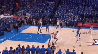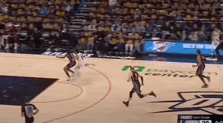 雷霆從第一場開始就祭出聯防,卡魯索只要在場,就時刻處於“準備協防”的狀態。這一回合他甚至預判了掘金的空切戰術和約基奇的腦後傳球,在威少起步加速的瞬間,就站到約基奇身後,破解了一記潛在的妙傳。
