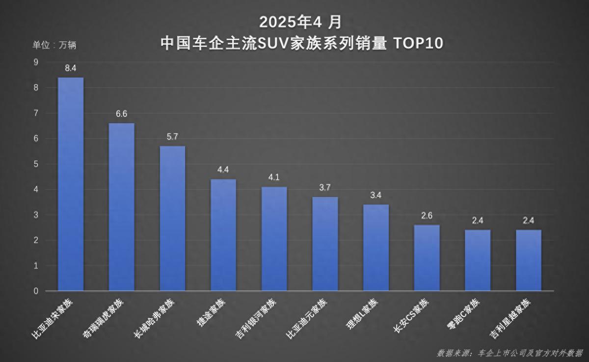 二季度首月,比亞迪宋家族以84088 輛國內銷量再度奪魁,連續多月穩坐中國車企主流 SUV 家族市場銷冠寶座。在傳統銷售淡季與市場競爭加劇的雙重挑戰下,宋家族在中國SUV 市場的領先優勢仍無可撼動。