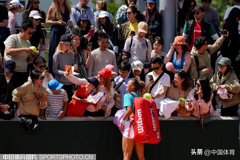 中國體育訊 5月23日,中國選手鄭欽文在羅蘭·加洛斯賽場進行訓練,備戰將於25日開賽的2025年法國網球公開賽。(中國體育圖片 唐詩 攝)