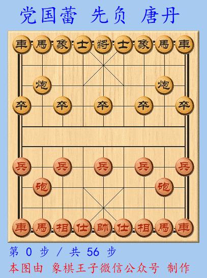 公開女子個人,此間一場女子象棋歷史第一人,九冠王唐丹執後手與女子棋後黨國蕾的強強較量,兩人之局,以中炮橫車雙正馬直衝中兵對屏風馬起3卒補右士象的激烈陣法開鬥。