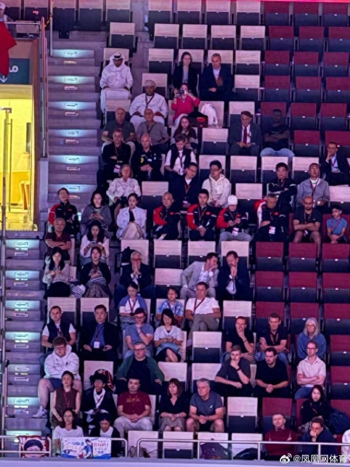 劉詩雯現場觀看王楚欽對陣莫雷加德,目前王楚欽2-1領先