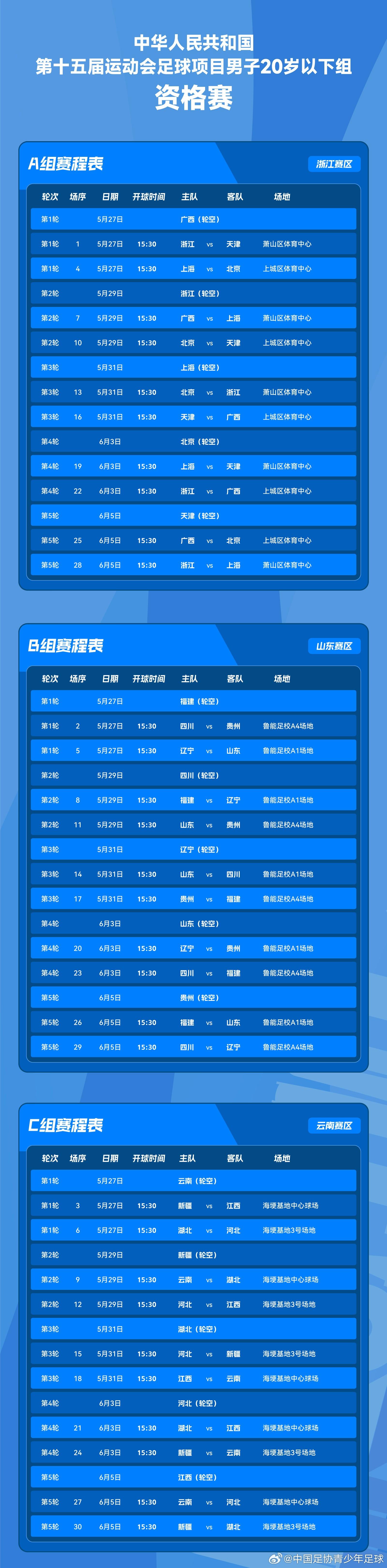 北京時間5月27日下午,中華人民共和國第十五屆運動會足球項目男子20歲以下組資格賽的3場比賽開打,其中上海、山東與新疆分別戰勝了對手。