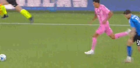 第18分鐘,邁阿密國際前場打出連續配合,蘇亞雷斯轉身打門飛上看臺