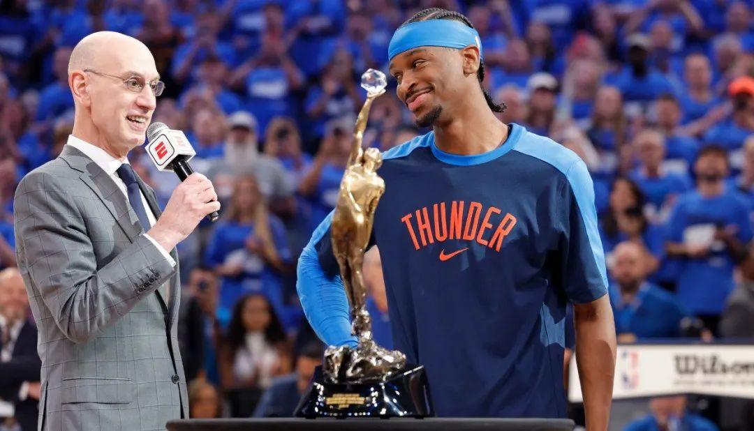 昨天,SGA真的在亞當·肖華的手中接過了MVP的獎盃,成爲了俄克拉荷馬雷霆隊史上的第三位MVP。作爲一支68勝球隊的頭牌兼聯盟得分王,“最有價值”這四個字絕對實至名歸。薩姆·普雷斯蒂那筆用保羅·喬治換回SGA外加一大串選秀權的操作再度封神,但他也非常坦誠地承認了,那時候他根本沒想過這個新秀賽季場均不過10.8分的年輕人會這麼出色,他只是想要那些選秀權,SGA在那筆交易裏只能算添頭。