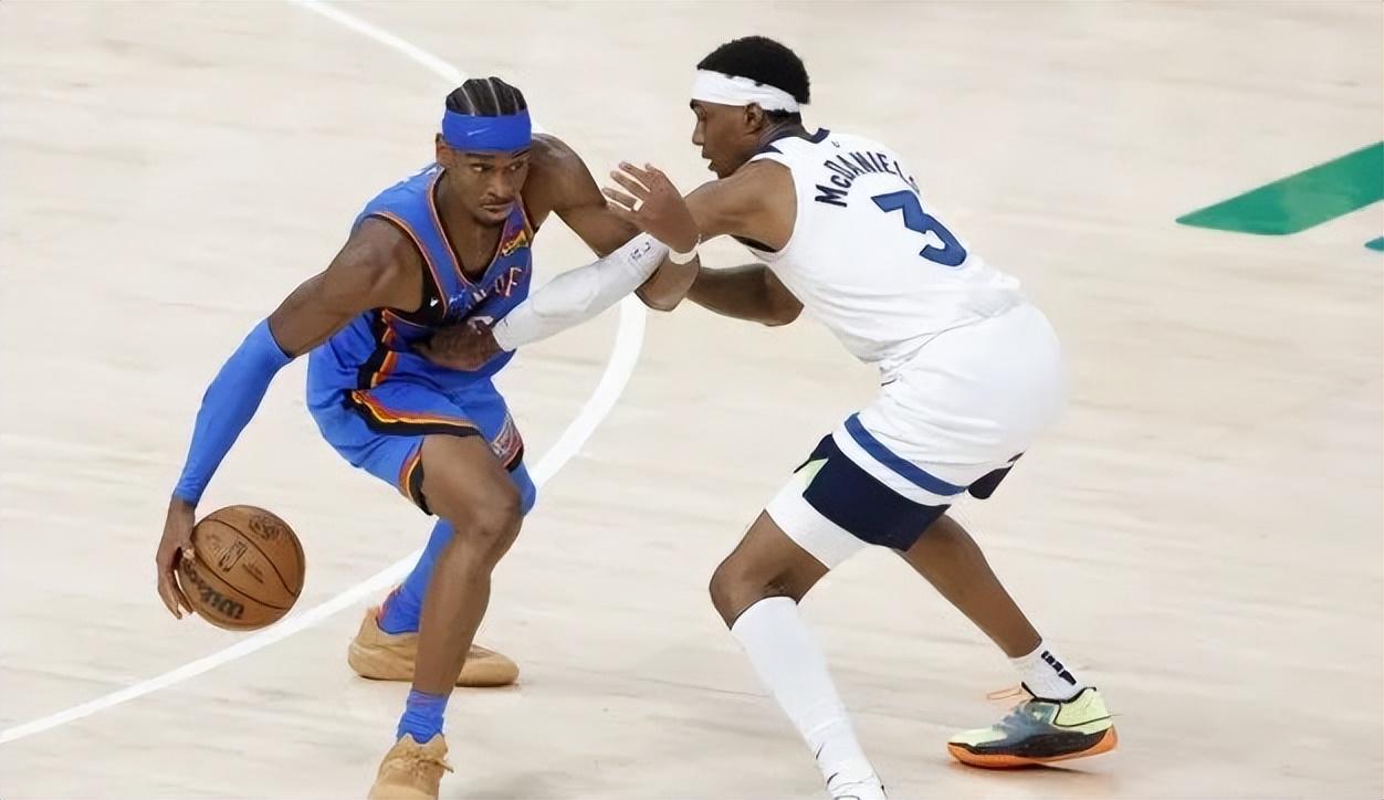 在戰勝明尼蘇達的前兩場比賽中,雷霆隊打得並不完美。第一場比賽SGA和杰倫·威廉姆斯合計45投只有17中,第二場比賽他們全隊只有33中9。這兩件事導致西部決賽每場都有一段時間你會感覺雷霆的進攻有些滯澀,不夠流暢,但這並不重要,因爲他們讓森林狼打得更難受。