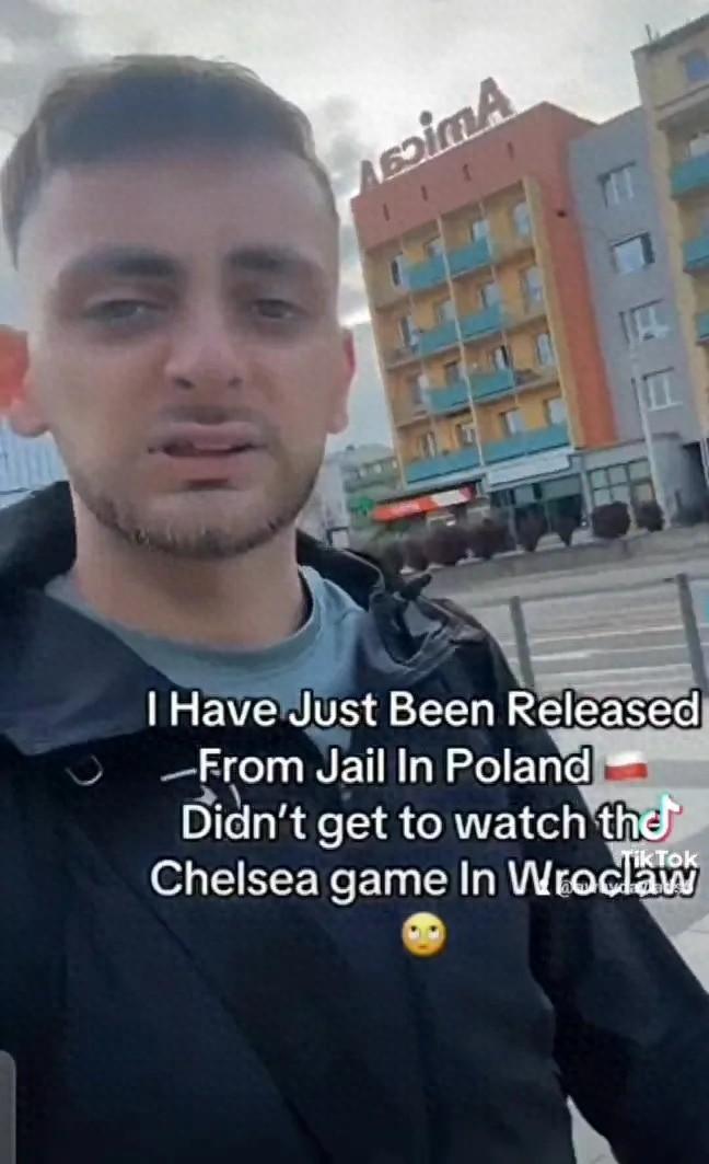 該球迷聲稱捲入鬥毆後,自己立即被送入牢房。視頻中他控訴道:“我在波蘭監獄被關了五天,週日早晨才獲釋。”這導致他剛剛纔得知心愛的藍軍贏得了決賽。
