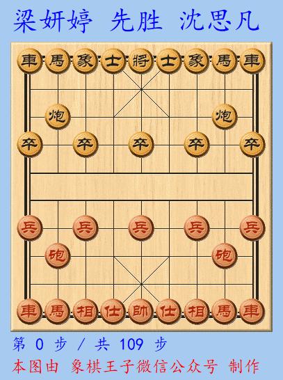 女子桂冠的拼爭,梁妍婷執先手擺出中炮陣,沈思凡應以冷僻的單提馬,這個陣勢,常規黑方較虧。