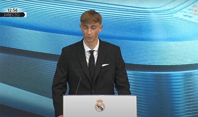 “能聽到我說話嗎?(笑)感謝主席。從第一天,我就渴望來到這裏,自從皇馬打來電話,我心裏就再也裝不下其他球隊了。感謝我的家人,他們每天開車送我去訓練,陪我出行……也感謝我的兄弟。