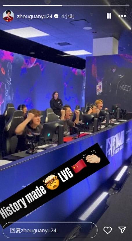 作爲CS玩家的中國車手周冠宇第一時間更新個人社媒,送上祝福:“LVG!我們做到了!”