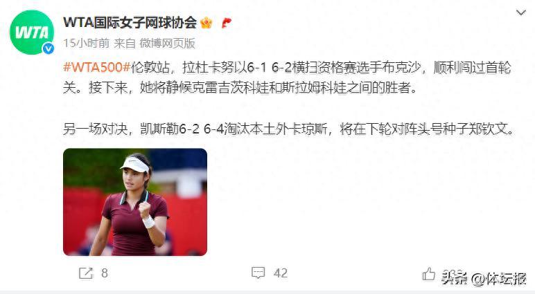 WTA國際女子網球協會社媒截圖