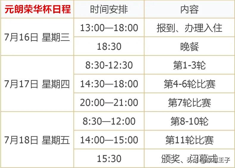 賽程方面,7月17-18日進行第九屆元朗榮華杯,19-20日舉行十虎與青聯對抗賽,象棋王子全程直播。