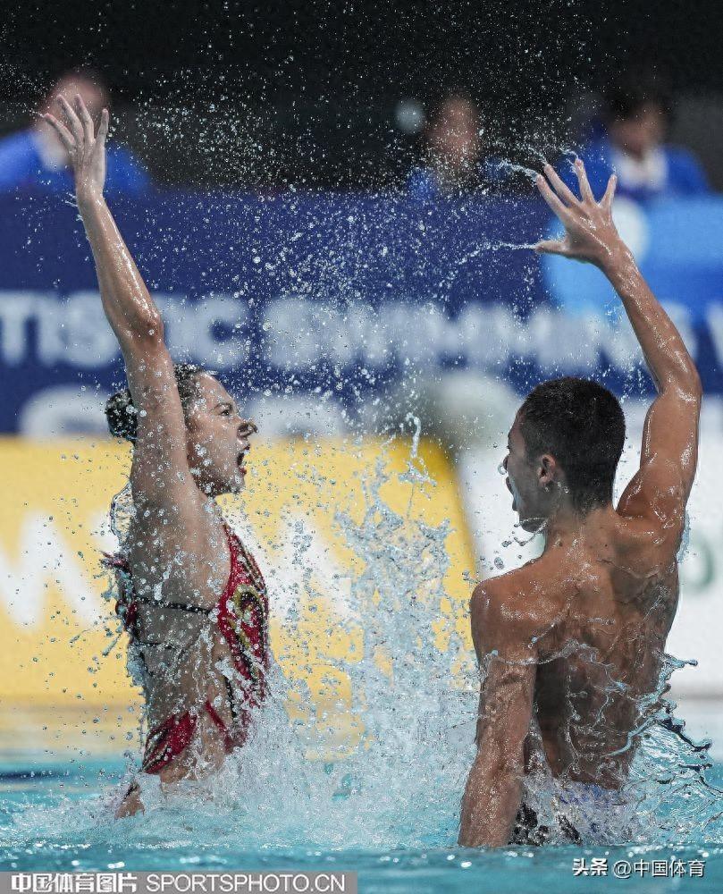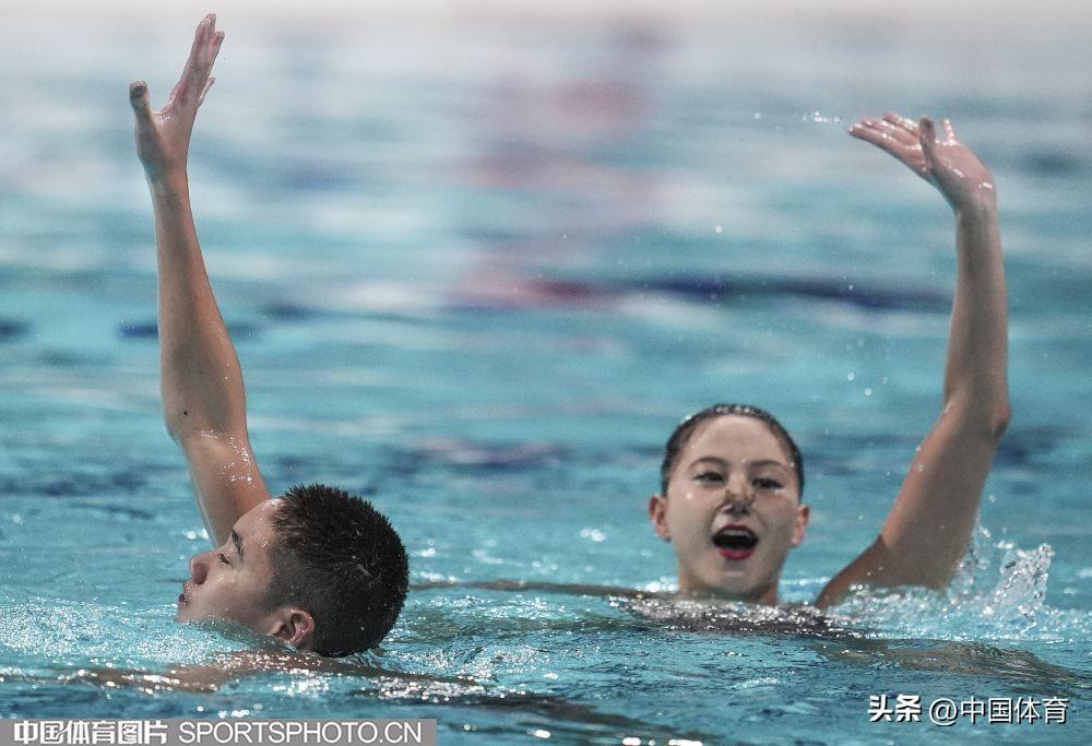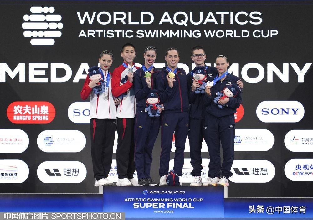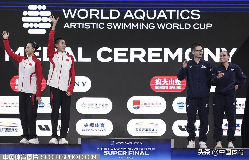 中國體育訊 6月15日,2025年世界泳聯花樣游泳世界盃總決賽在西安奧體中心遊泳跳水館展開收官日的爭奪。在混合雙人自由自選決賽中,中國組合郭牧也/劉津含以275.0896分獲得銀牌。(中國體育圖片 魏徵 攝)