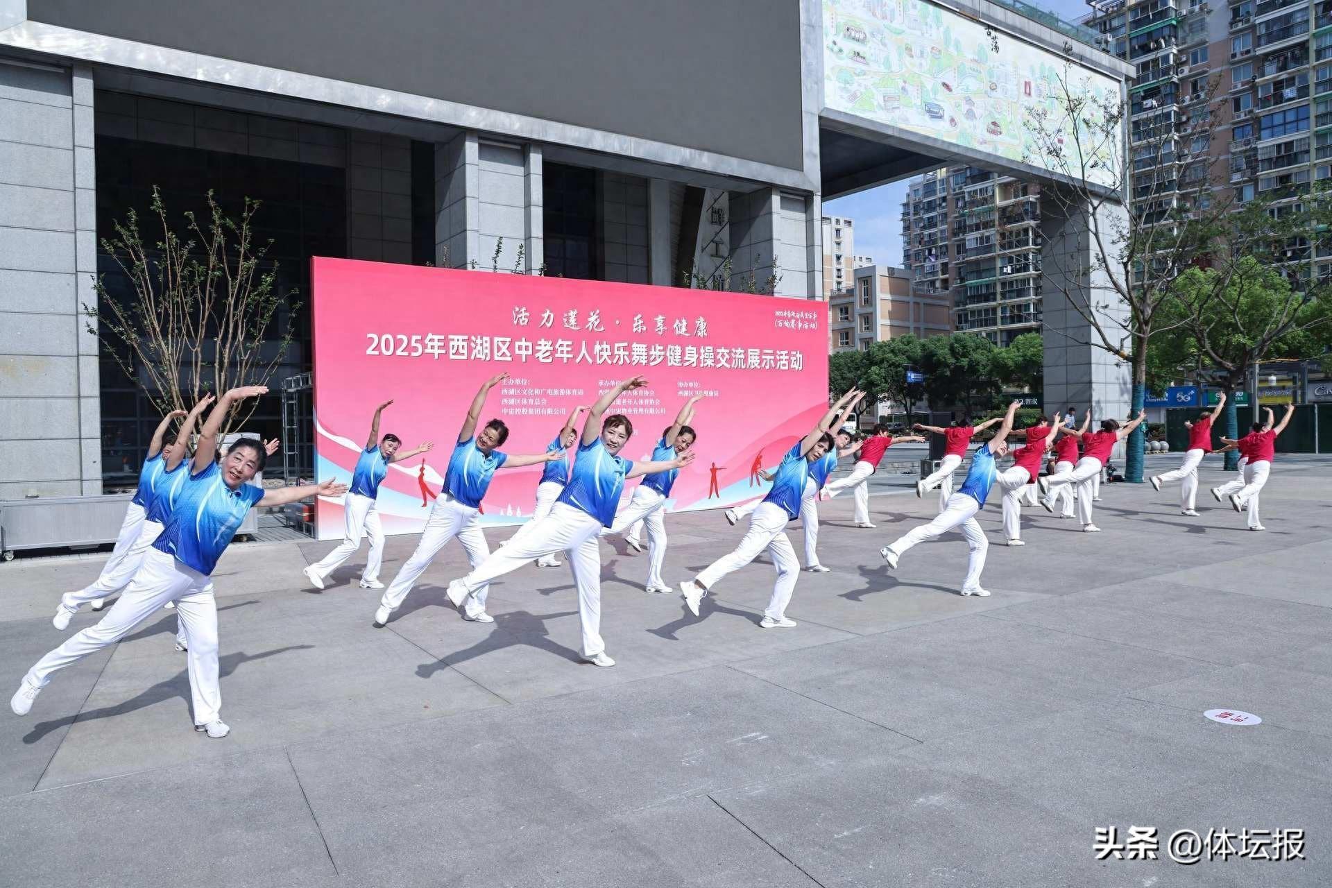 6月18日,杭州西湖區古蕩街道蓮花廣場上活力四溢、熱鬧非凡,“活力蓮花·樂享健康”2025年西湖區中老年人快樂舞步健身操交流展示活動在此精彩上演。此次活動積極響應全民健身國家戰略,旨在豐富老年人的體育健身生活,大力推動西湖區快樂舞步健身操運動的廣泛普及與水平提升。
