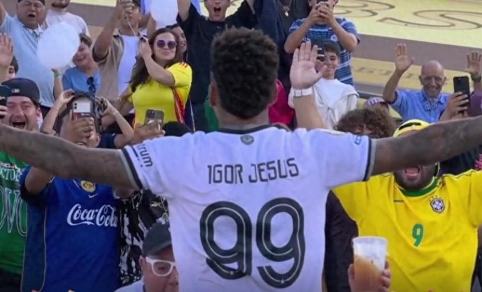 完成這粒進球之後,伊戈爾-熱蘇斯翻越了廣告牌,衝向球迷看臺,瘋狂慶祝,同時,他又做出了“龜派氣功”的動作,上一場他在破門之後也做了同樣的慶祝動作。值得一提的是,博塔弗戈隊友們也第一時間衝向伊戈爾-熱蘇斯,抱團簇擁,氣勢如虹,門將在後場也是振臂揮拳,非常激動,由於是南美球隊,美國球迷也如同主隊一般,萬人沸騰。
