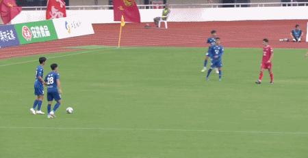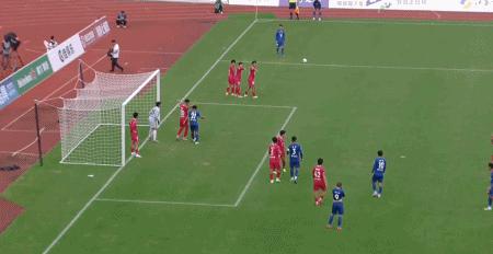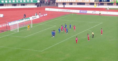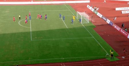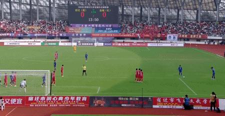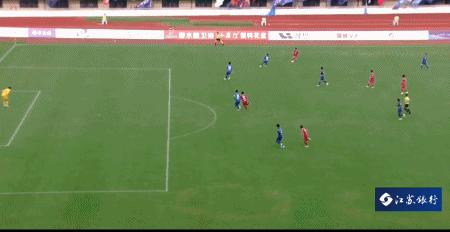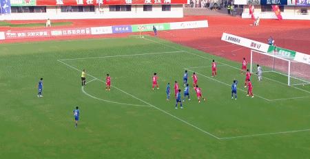 第20分鐘,唐錦頭球率先得分,鹽城隊1-0領先宿遷隊