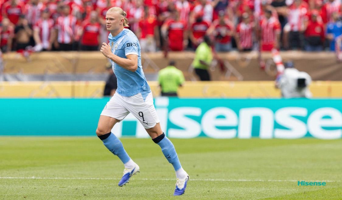 哈蘭德終於進球了!看臺沸騰,曼城半場轟3球:神仙吊射+世界波