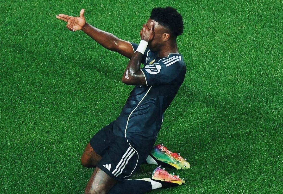 此役,皇馬這邊踢得還算順利,皇馬在比賽第40分鐘,“銀河戰艦”打出一次快速反擊,貝林厄姆中場送出直塞,維尼修斯得球后強勢突破,在禁區弧頂位置低射破門,皇馬1-0領先,巴西人也是上演霸氣滑跪慶祝。在半場結束前,皇馬再下一城,維尼修斯禁區內腳後跟回敲,巴爾韋德跟進推射破門,2-0,西甲豪門幾乎提前殺死了比賽懸念。