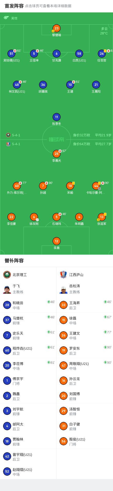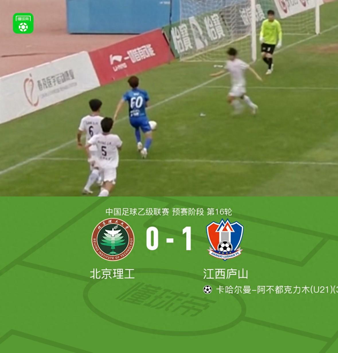 江西廬山1-0北京理工,卡哈爾曼-阿不都克力木製勝球