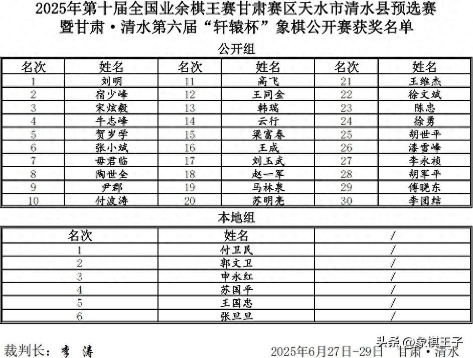 此次2025年第十屆全國業餘棋王賽甘肅賽區天水市清水縣預選賽暨甘肅·清水第六屆“軒轅杯”象棋公開賽,獎勵五萬,冠軍萬元。