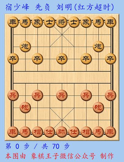賽前抽籤,宿少峯抽得執紅棋先行,擺下仙人指路陣,劉明應以卒底炮。