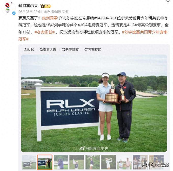 近日,劉國樑女兒劉宇婕在RLX拉爾夫勞倫青少年精英賽中奪冠,拿下個人首座AJGA邀請賽冠軍。