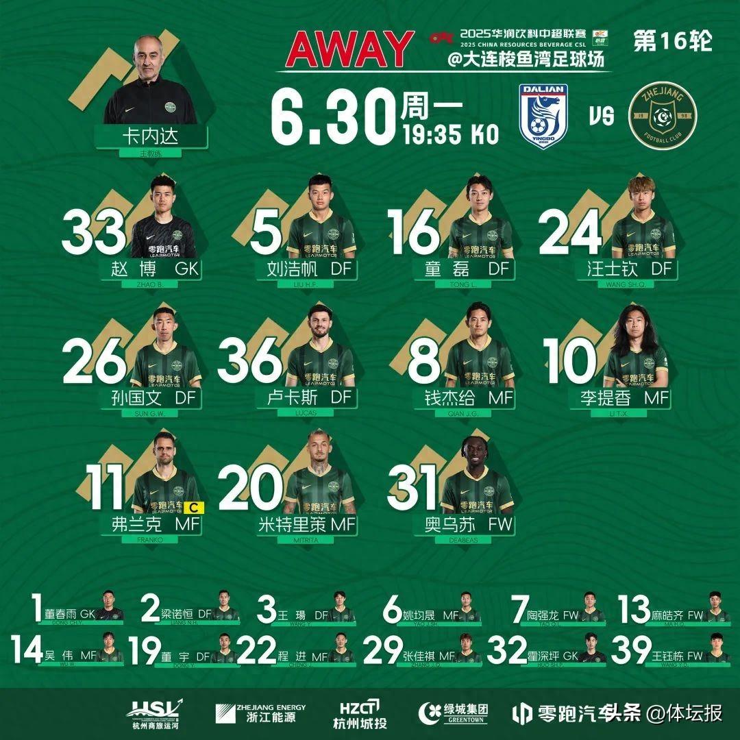6月30日,中超第16輪比賽全面拉開戰幕。本輪比賽,浙江綠城做客遼寧,與大連英博展開下半程中超聯賽的首場積分爭奪戰。最終,浙江綠城0-1不敵大連英博。