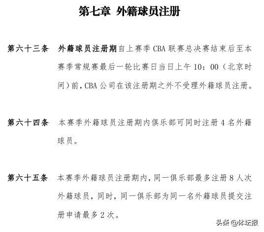 也就是說,每支球隊在新賽季最多隻能籤八名外援。另外如果球隊和外援的合同到期後,過了一段時間再度註冊的話,也要算作一次外援的更換。