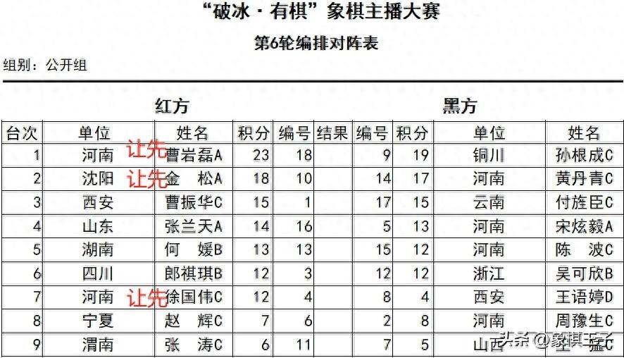 在第五輪的對戰中,前四輪全勝的曹巖磊,遇到業餘高手黃丹青,兩人戰至炮兵仕相全對炮雙卒士象全成平。