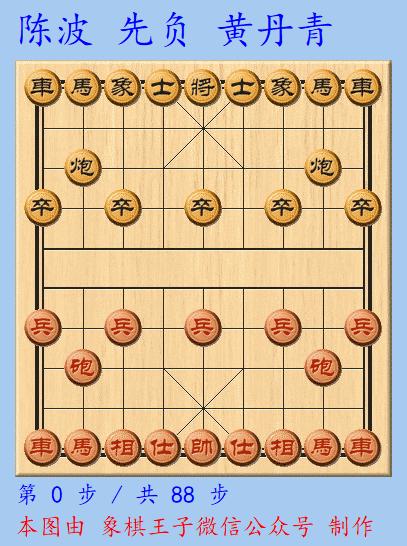 同另一位豫內名手陳波的激戰,兩人仙人指路對卒底炮陣,黃丹青執黑棋強勢進攻,在連多雙卒後,以馬3卒士象全對馬兵雙仕88手拿下。