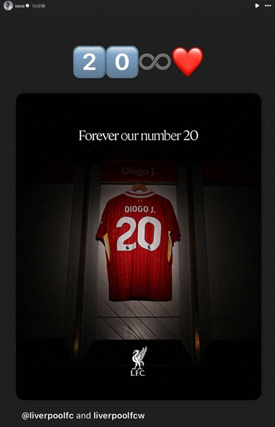 隨後,阿諾德在社交媒體轉發了這一條動態,並配文:“20∞❤”,隨後,麥卡利斯特、努涅斯等球員也分別轉發了俱樂部官方的動態。