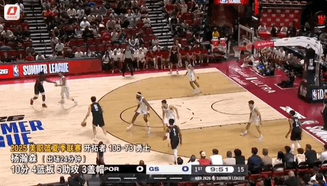 中國球員楊瀚森迎來代表開拓者隊的首秀