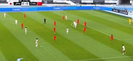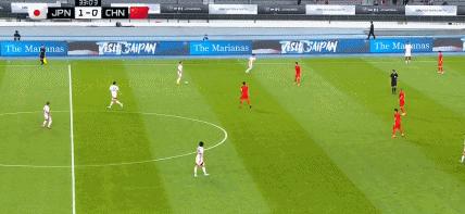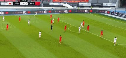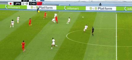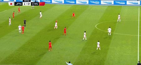 第35分鐘,國足後場被斷,佐藤龍之介遠射打高