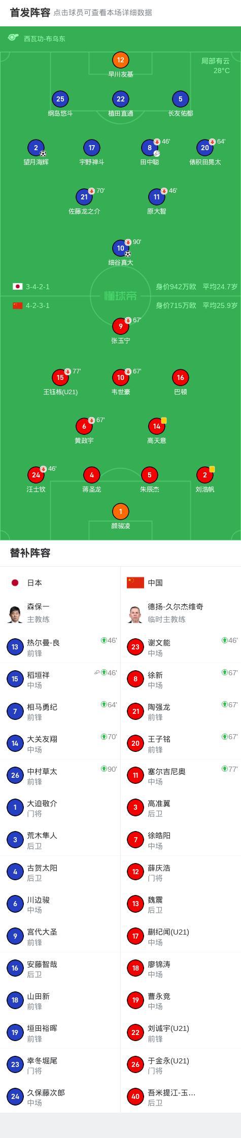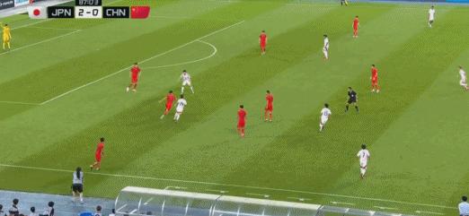 第63分鐘,望月海輝遠射擊中朱辰傑後折射入網,日本2-0國足