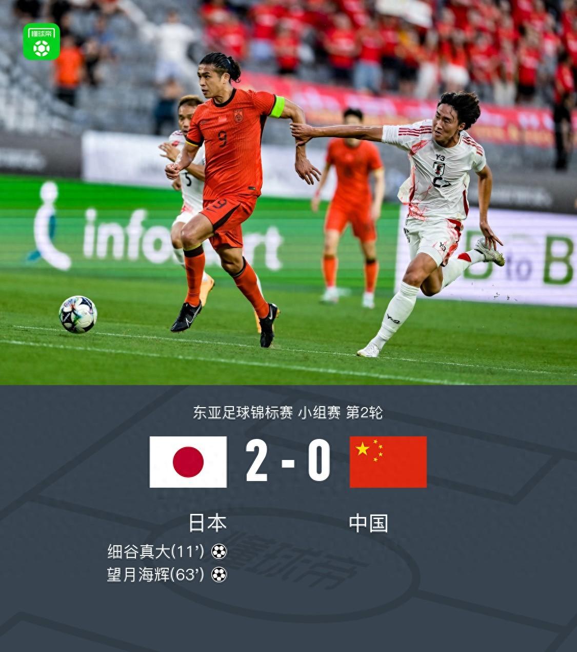 北京時間7月12日18:24,東亞杯第2輪在韓國首爾龍仁龍體育場繼續進行,國足對陣日本。上半場,細谷真大憑藉個人能力破門,隨後張玉寧拼出單刀可惜打門被撲,顏駿凌獻關鍵撲救。下半場,望月海輝折射破門,王鈺棟傷退。最終,國足0-2不敵日本,遭東亞杯兩連敗。
