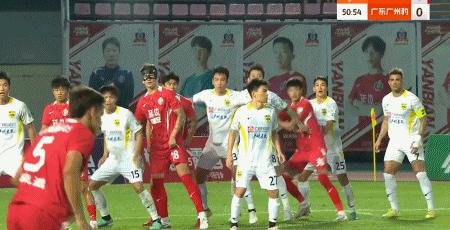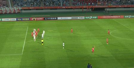 第17分鐘,尼康任意球開到禁區,韓軒頭球攻門頂高