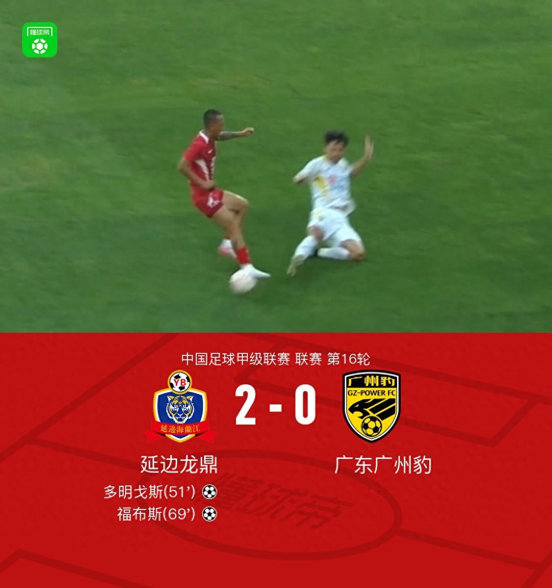 延邊龍鼎2-0廣東廣州豹,多明戈斯建功,福布斯破門