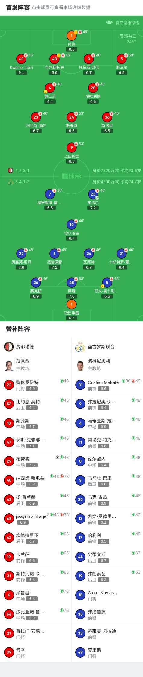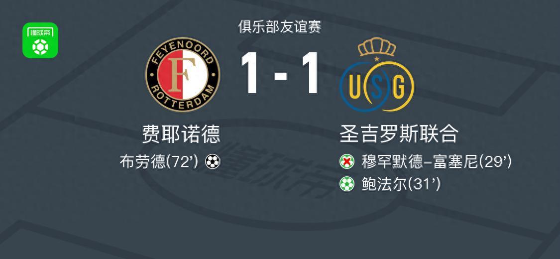 費耶諾德1-1聖吉羅斯聯合,鮑法爾破門,布勞德扳平比分
