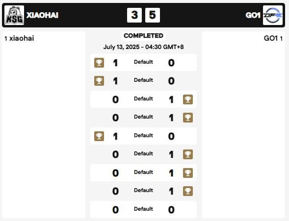 小孩在BO9決賽中一度2-0領先,但GO1幾度頑強地將比分扳平,並率先取得賽點。