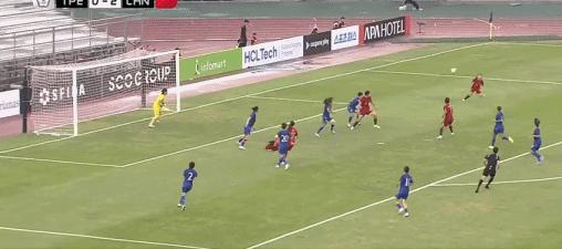 第8分鐘,邵子欽頭球中框,隨後補射破門,中國女足1-0中國臺北女足