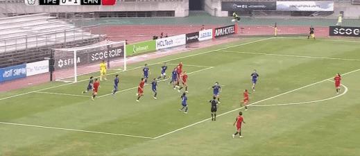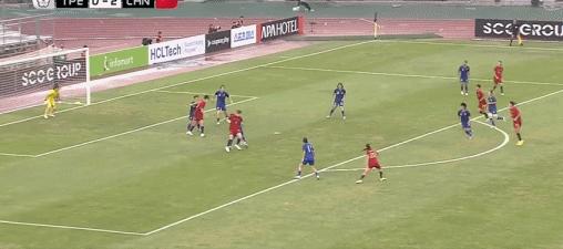 第33分鐘,蘇育萱獲得單刀機會,隨後裁判示意越位
