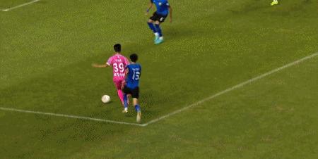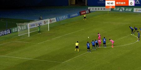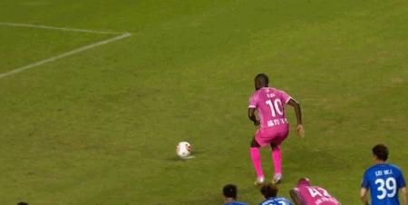 第45+2分鐘,翟肇宇送點,奧格布主罰點球命中,南京城市1-1
