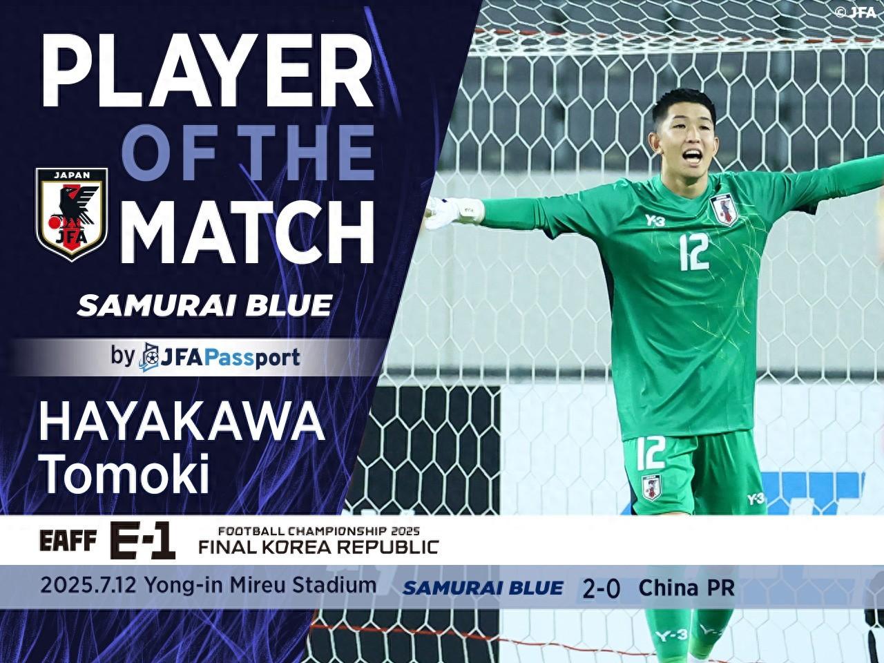 東亞杯第二輪,日本隊2-0擊敗中國隊,而在當地時間14日上午,日本足協官方公佈了本場比賽的球迷票選最佳球員——早川友基。