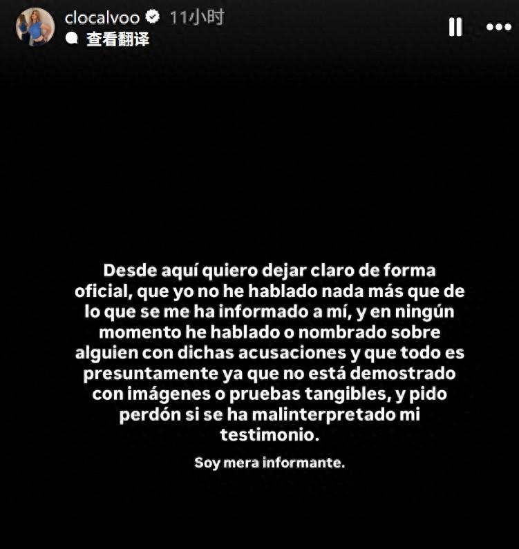 克勞迪婭-卡爾沃寫道:“我在此正式聲明:我所述內容僅基於已被告知的信息,從未提及任何涉及相關指控的人士。所有說法都是不確定的,沒有圖像或確鑿證據予以證實。如果我的證詞引發誤解,我請求原諒。”